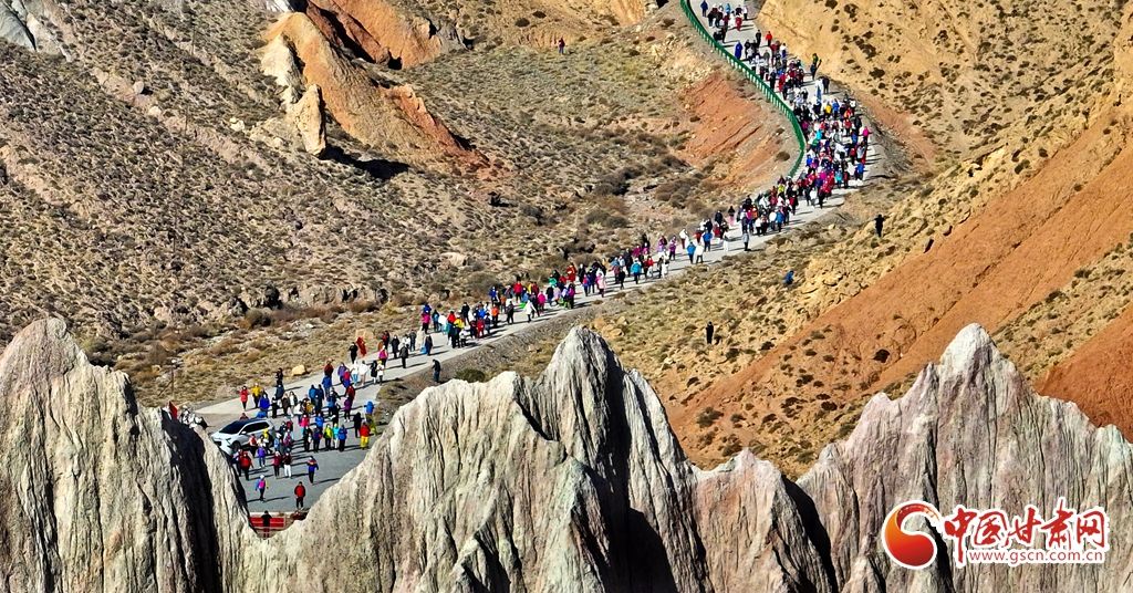 11月11日,1000多名群众在甘肃省张掖市肃南裕固族自治县外星谷景区徒步穿越,在领略大自然鬼斧神工的同时强健体魄。