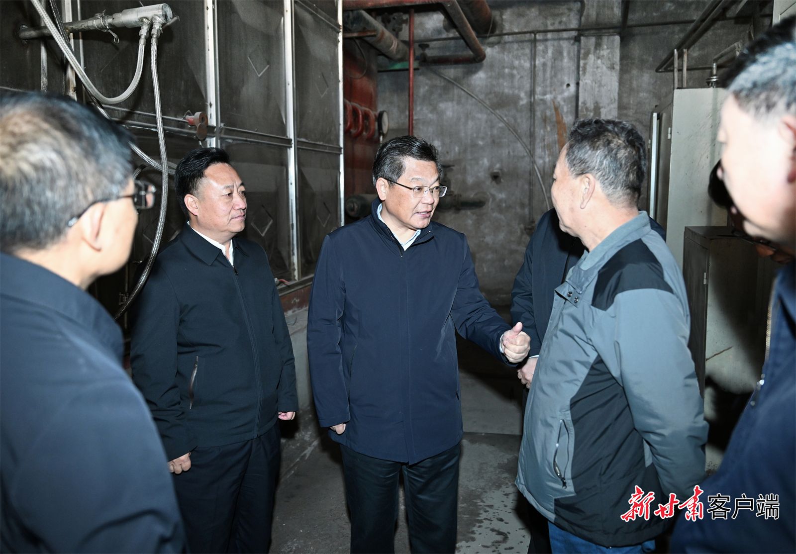 在兰州振超热力有限公司,任振鹤来到供热站,详细询问燃料储备、设备运行、应急保障、安全生产等工作,现场了解供热面积、供热能力、用户数量情况。他指出,近期我省气温降幅很大,保障千家万户温暖过冬,是必须高度重视的民生事、关键事、要紧事,也是各级和有关部门必须答好的考卷。要坚持宜煤则煤、宜气则气,宜集中则集中、宜分散则分散,多渠道增加煤炭和天然气供给,做到锅炉检修到位、燃料保障到位、安全机制到位、应急抢修到位,确保稳定供热、优质供热、安全供热。要提升服务质量,加强沟通协调,组织企业、物业、社区等多方力量,扎实开展“访民问暖”行动,深入走访排查了解群众诉求,主动上门解决“供暖不达标”等问题,不断提高供暖工作的精细度和精准度。要立足当前、着眼长远,实施好“拆小并大”整合工程,加快推进老旧小区供热管网改造,系统破解供暖工作的难点痛点,全面提升城市供暖质量和服务水平。
