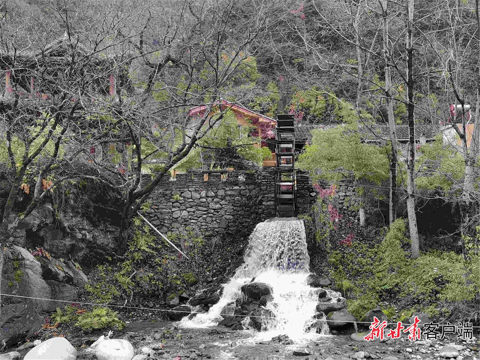 穿过小巷,澎湃的白马河再现眼前。河水奔放向前,绽放着生命的激情。白马河从岷山大熊猫国家公园流出,在文县铁楼藏族乡激荡50公里,后注入白水江,经碧口,汇入嘉陵江。这条白马山寨的母亲河,润泽着两岸的土地,也是水磨的动力源泉。如今,铁楼寨在河边恢复起了水磨群,打造磨坊、廊桥博物馆,成为新的特色景点。