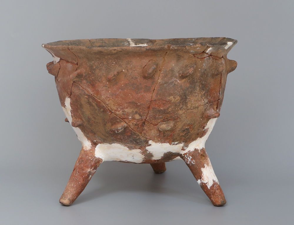 这是在位于河南省新郑市的裴李岗遗址出土的炊具鼎(资料照片)。新华社发(中国社会科学院考古研究所供图)
