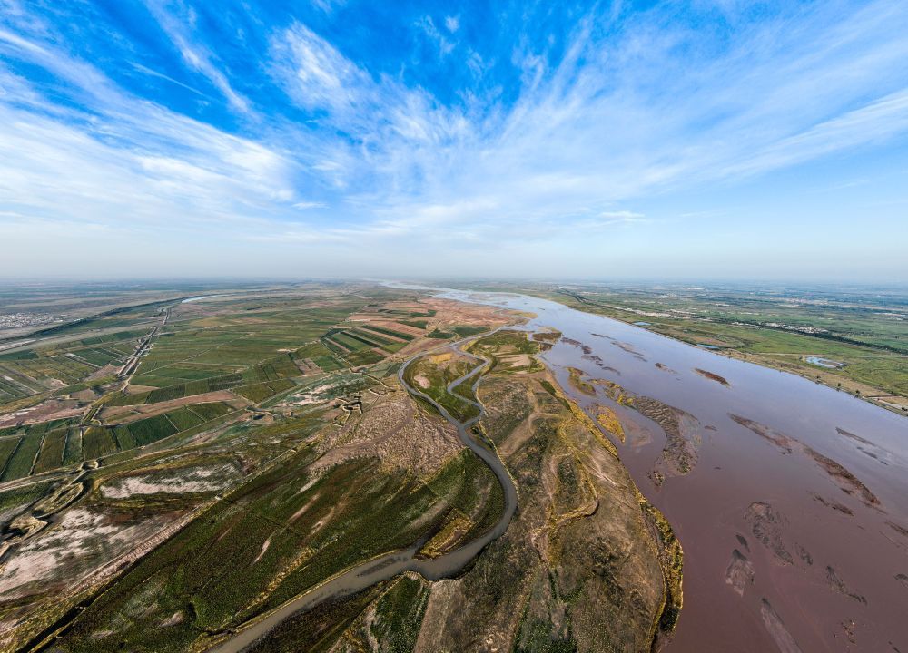 黄河从内蒙古巴彦淖尔市临河区双河镇流过(无人机照片,2023年9月15日摄)。新华社记者 邢广利 摄