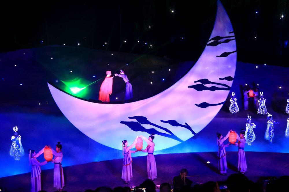演员在大型沙漠实景剧《敦煌盛典》中表演。张晓亮 摄