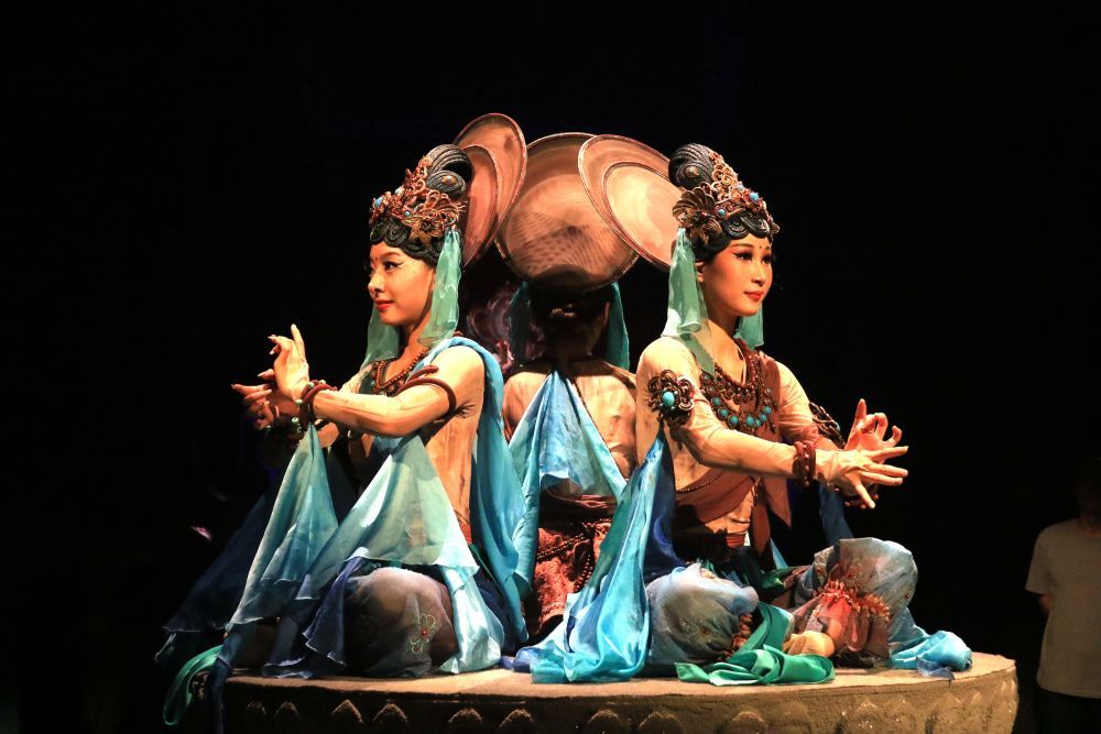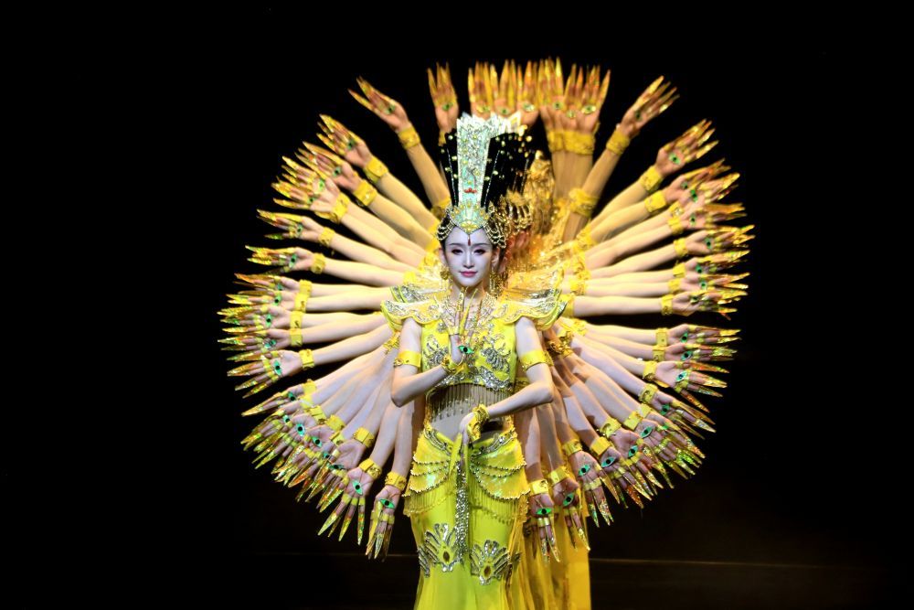 在敦煌大剧院,演员在大型情景音画剧《千手千眼》中表演。张晓亮 摄