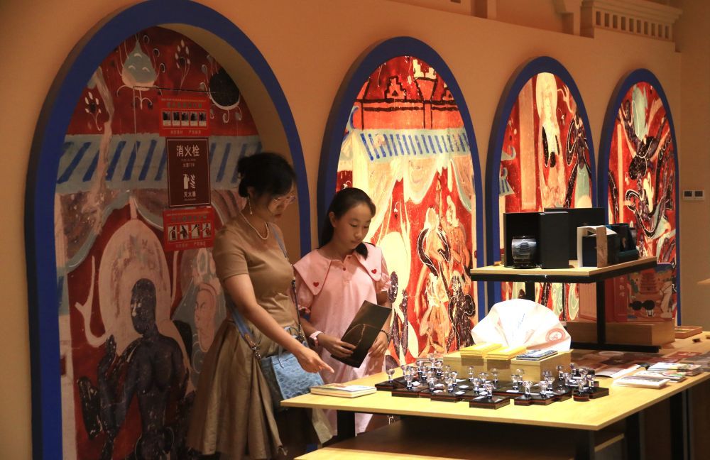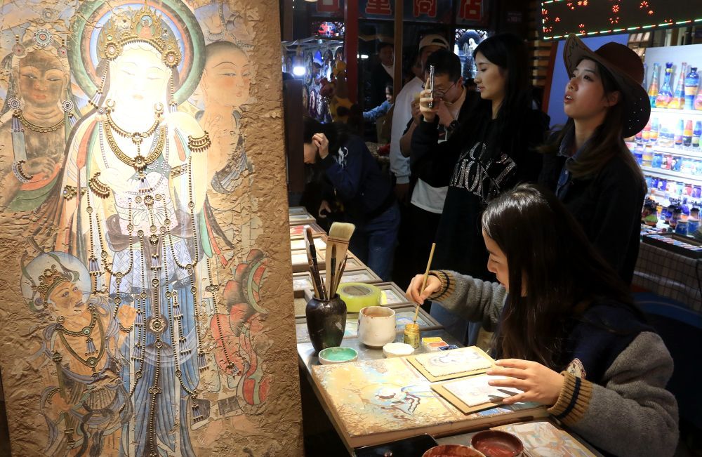 游客在《乐动敦煌》上元雅集选购敦煌文创产品。张晓亮 摄