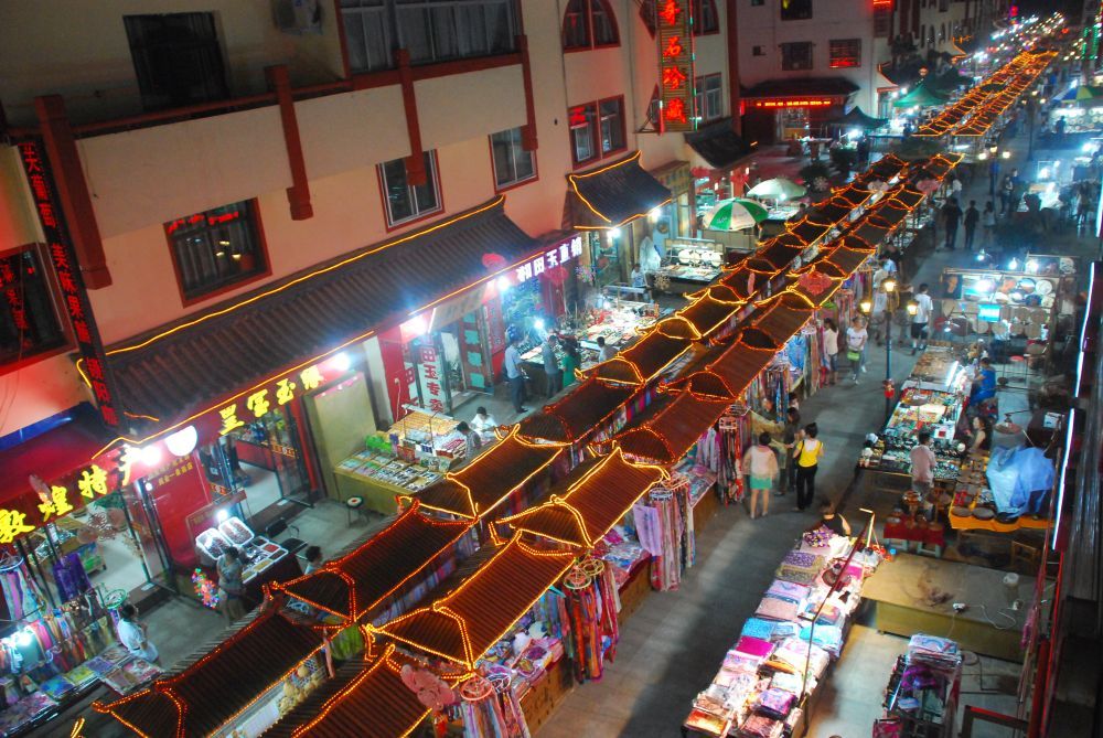 游客在敦煌夜市选购泥板画。张晓亮 摄