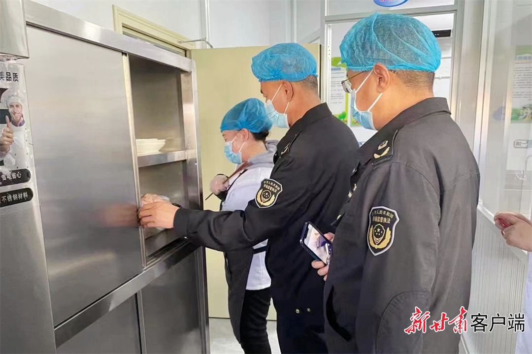 酒泉市市场监管局执法人员深入餐饮企业后厨检查。