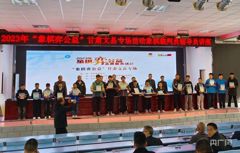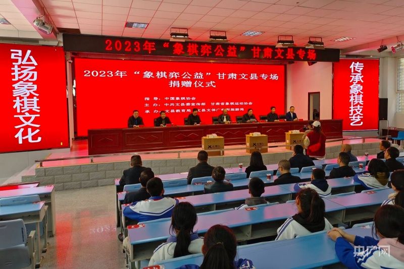 2023年“象棋弈公益”甘肃文县专场捐赠仪式现场(央广网发 甘肃象棋运动协会图)