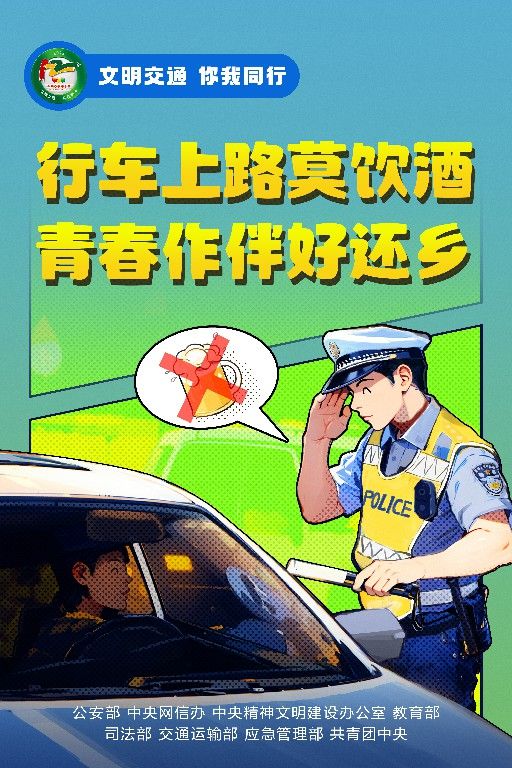 【122全国交通安全日·海报】行车上路莫饮酒 青春作伴好还乡