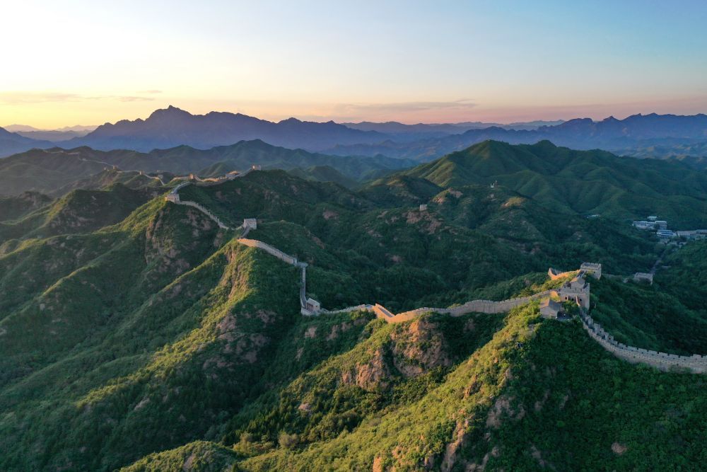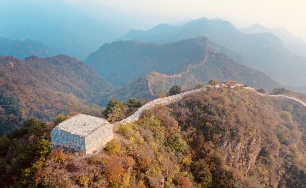 ↑ 10月10日在河北省遵化市侯家寨镇境内拍摄的长城晨景(无人机照片)。新华社记者 杨世尧 摄