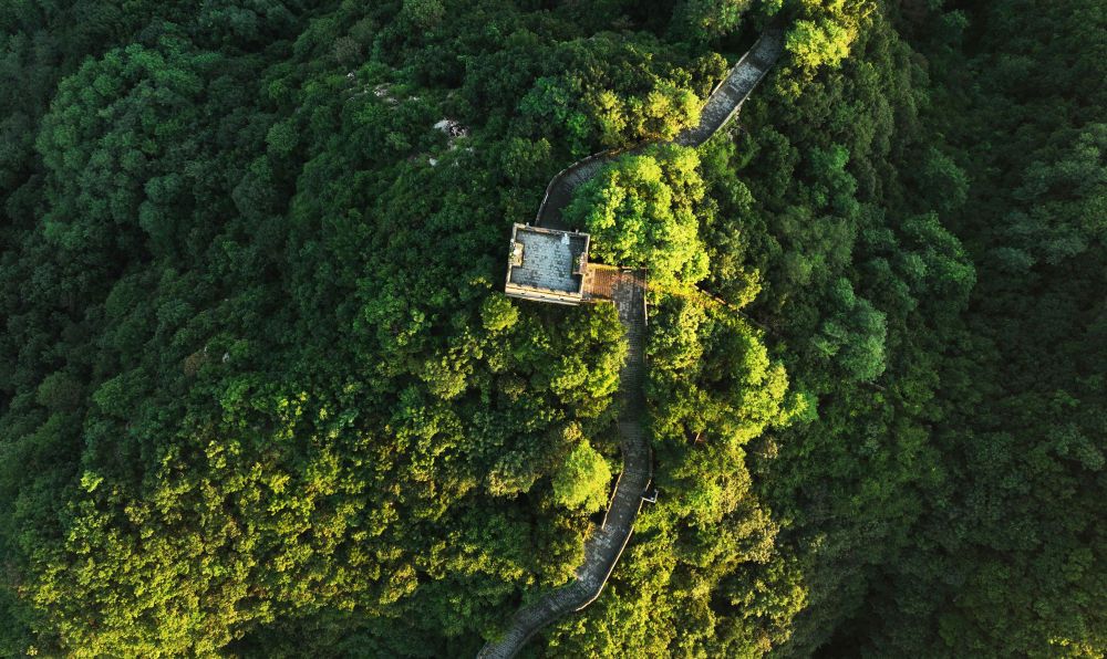 ↑ 这是8月31日拍摄的位于河北省承德市滦平县境内的金山岭长城风光(无人机照片)。 新华社记者 牟宇 摄