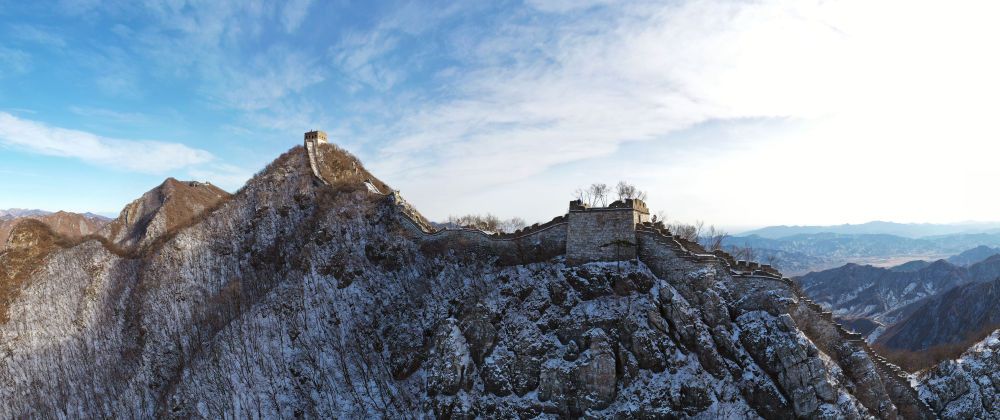 ↑ 2月13日拍摄的箭扣长城(无人机全景照片)。新华社记者 才扬 摄