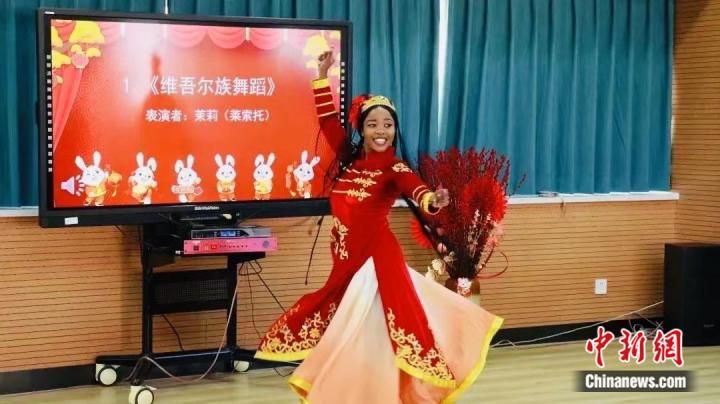 图为就读于西北师范大学的莱索托留学生茉莉表演维吾尔族舞蹈。受访者供图