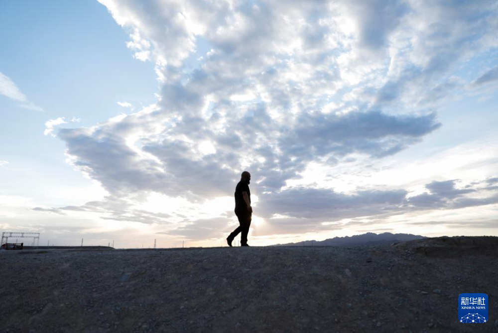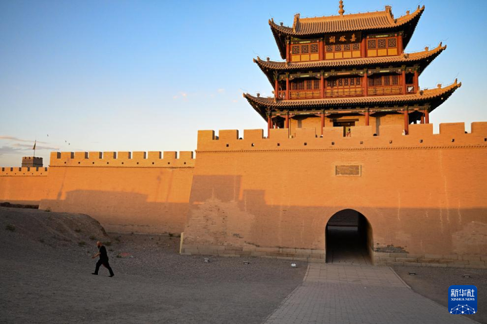 7月14日,结束一天的工作,李森走出甘肃嘉峪关关城景区。新华社记者 陈钟昊 摄