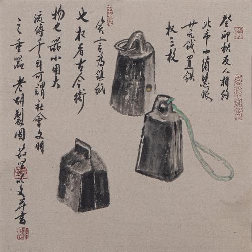 “退休以后,我和老壶经常在一起写字、画画。11月初,老壶在平凉的市场上淘到三个秤砣,便随手画了下来。画好之后,老壶希望我为‘秤砣’配上文字,我就答应了。”乡石说。