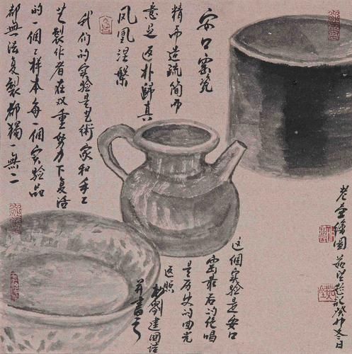 乡石随即题字:“精而造疏,简而意足。返璞归真,凤凰涅槃。我们的实验是艺术家和手工艺制作者,在双重努力下复活的一个个样本。每一个实验品都无法复制,都独一无二。这个实验是安口窑最后的绝唱,是历史的回光返照。抄刘建国语并书之。老壶绘图茹坚题记,癸卯冬日。”