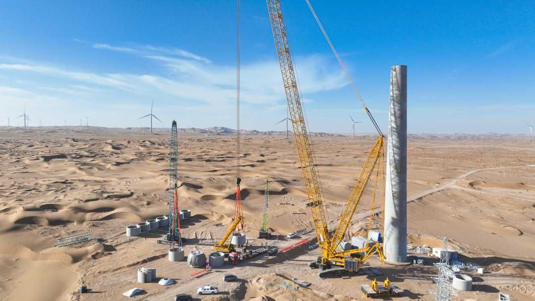 12月8日,甘肃省张掖市高台县北部滩百万千瓦风电基地,一座座高大的风车高耸入云,巨大的叶轮随风舞动,将风能转化为电能送到千家万户。
