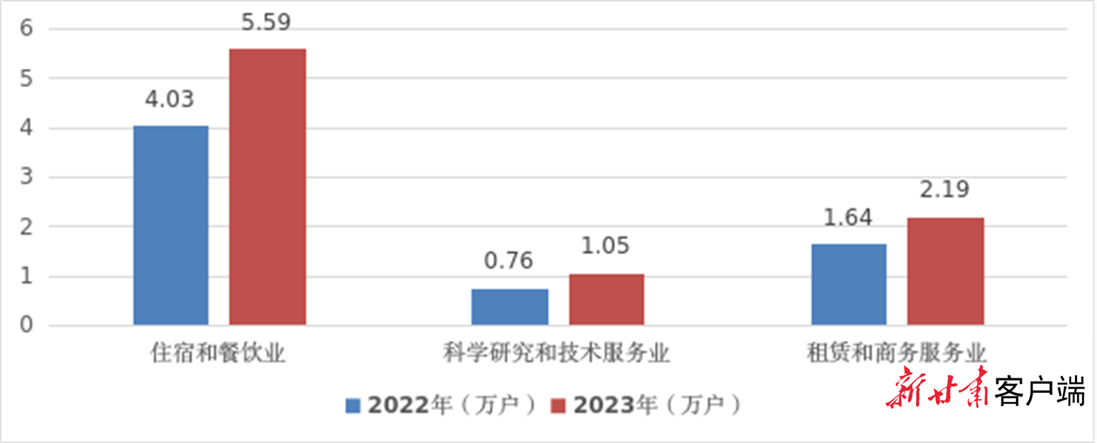 在新设经营主体中,服务业新设经营主体超过1万户且有三大行业增速超过30%:住宿和餐饮业由4.03万户增长到5.59万户,同比增长38.85%;科学研究和技术服务业由0.76万户增长到1.05万户,同比增长37.56%;租赁和商务服务业由1.64万户增长到2.19万户,同比增长33.86%。数据显示,2023年,我省服务业回暖迹象明显。
