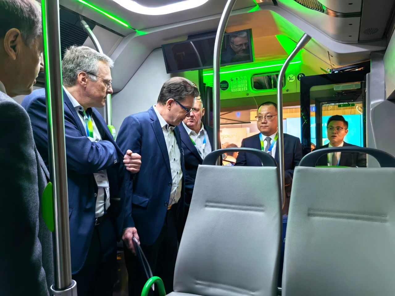 展会期间,兰州广通CAMBELL项目的代表与来自德国多个城市以及瑞士、奥地利、比利时等国的多家交通企业负责人和代表进行了深入交流。德国VDV交通企业联合会主席马丁-施密茨详细巡视了CAMBELL展车,对车辆进行了高度赞扬,在听说可以使用不同电池系统后,施密茨主席指出:“LTO电池的超级快充技术非常重要,1:1的解决方案可以帮助公交企业节省大量资金。”博特罗普市市长蒂施勒先生亲赴柏林VDV客车展,更是现场当起了CAMBELL电动大巴“销售员”的工作,他在试乘后说:“CAMBELL电动大巴在技术领域、环保节能方面、乘客舒适性和时尚的外观,都代表了当今世界电动大巴的主流成就。”