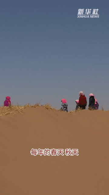 每年的春秋季节,正是民勤人压草方格沙障、种梭梭治沙的时节。