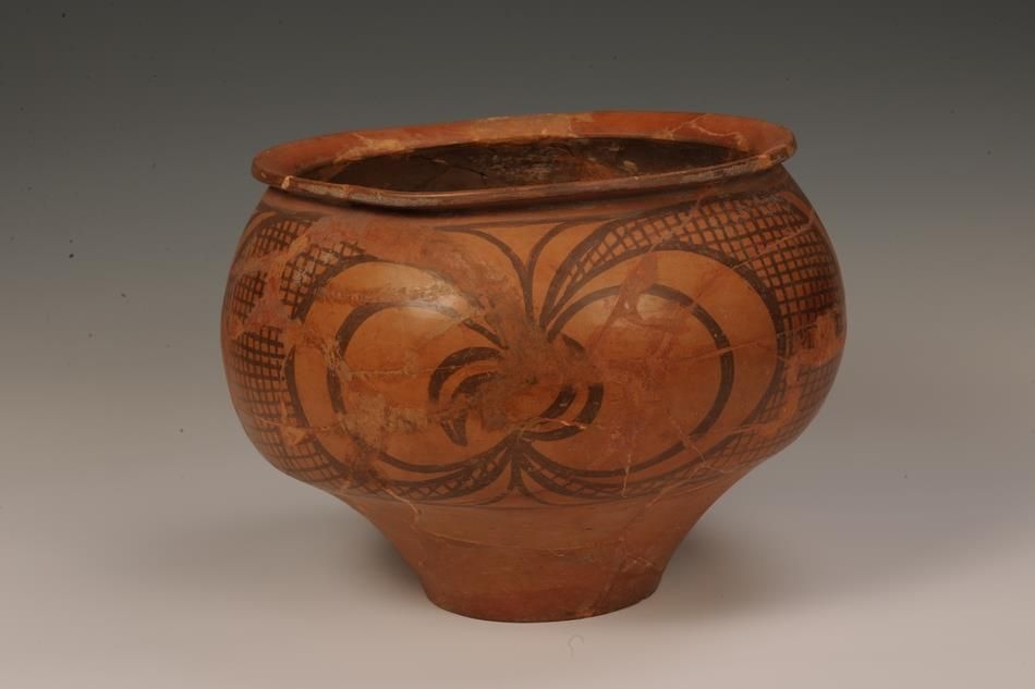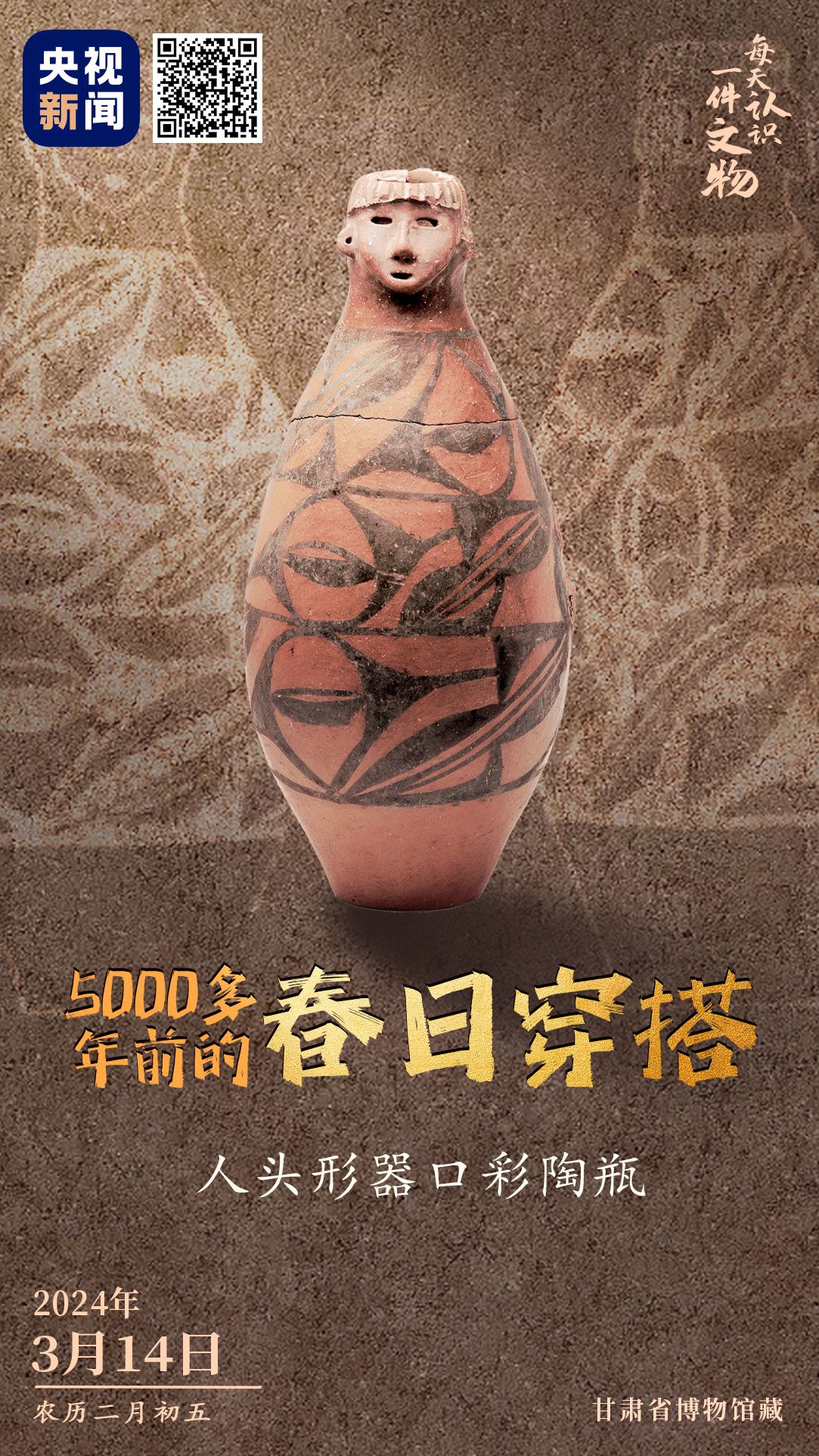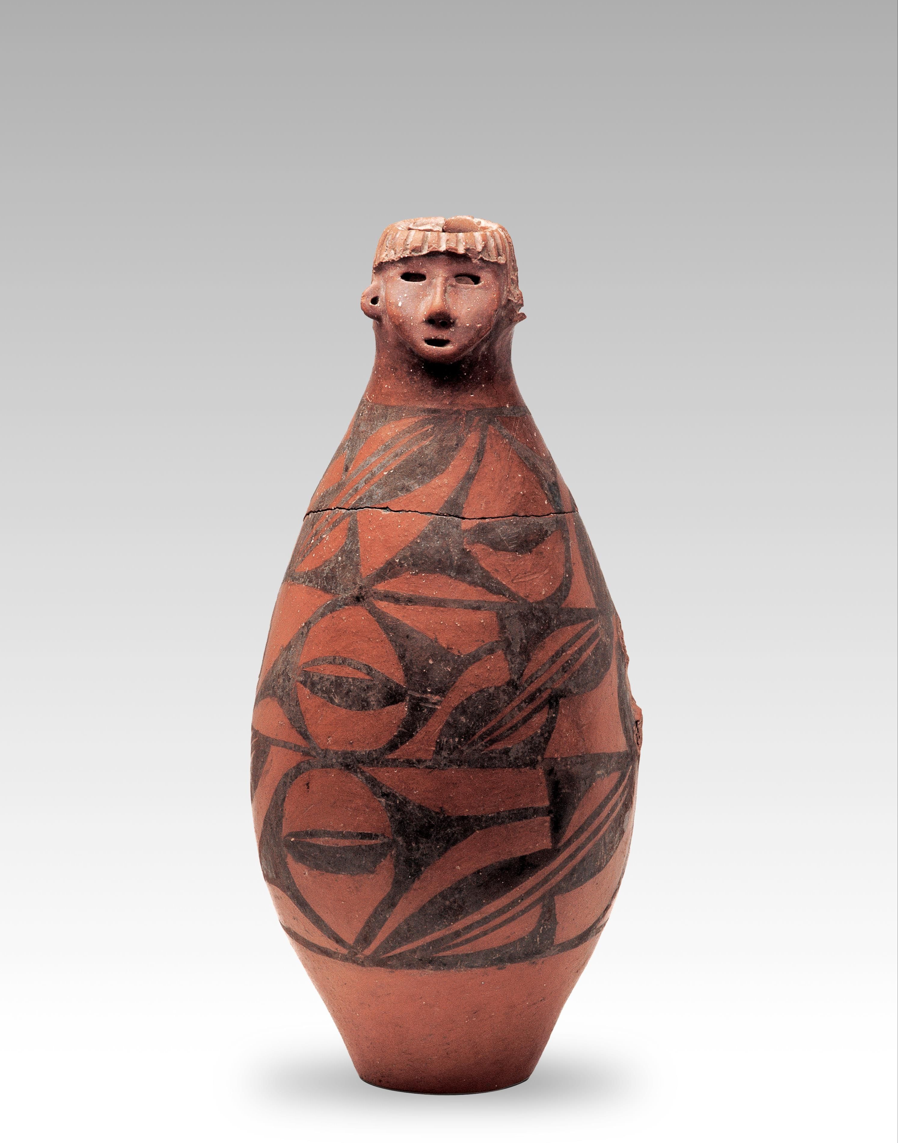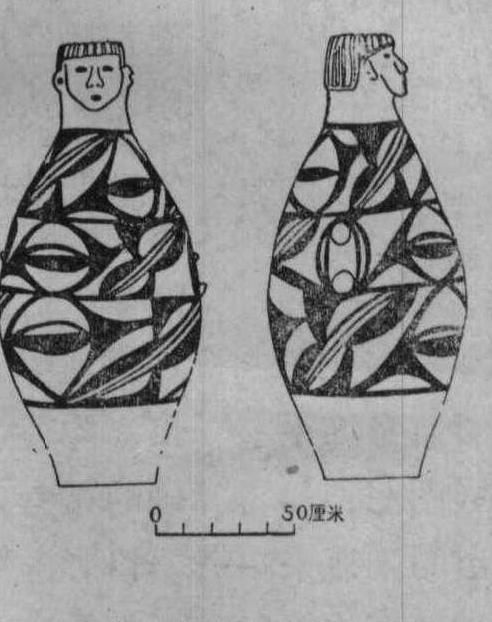 △人头形器口彩陶瓶 甘肃省博物馆藏