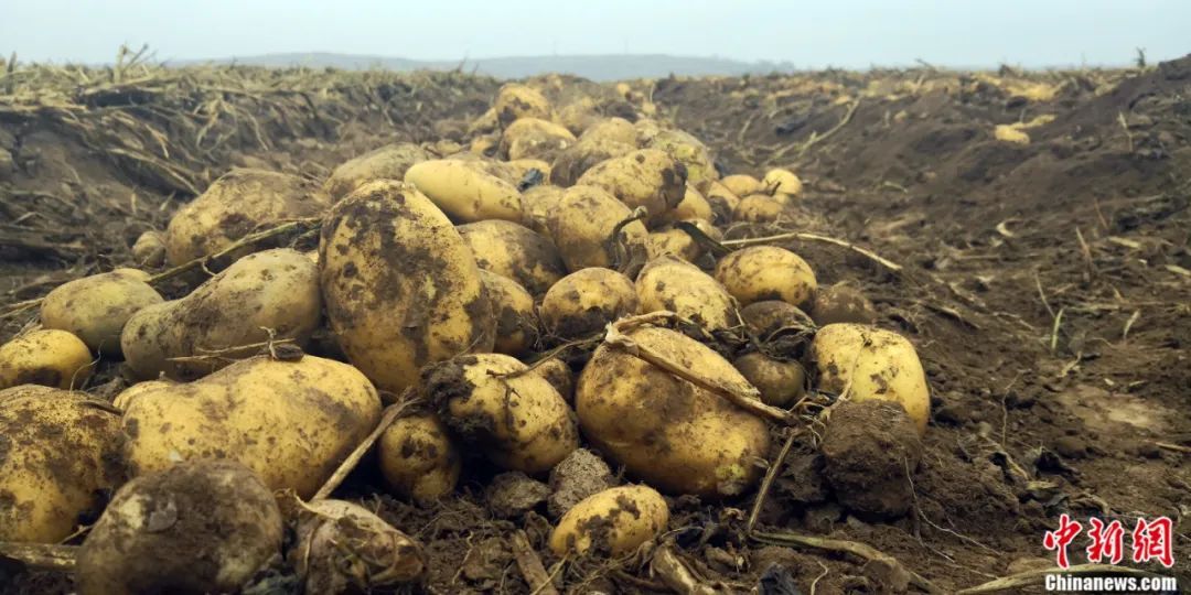 图为甘肃定西田间地头,刚挖出来的定西土豆。魏建军 摄
