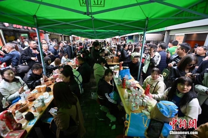 “现在还不是假期,人已经很多了。我们估计五一假期还会有更多的人。”店主穆女士对中新财经记者表示,店里已经延长了营业时间,保证每一位排队的外地游客都能吃上。