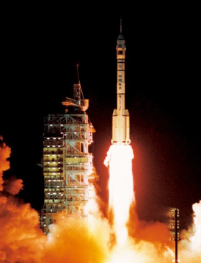我国第一艘载人飞船“神舟五号”发射升空,将航天英雄杨利伟送入太空,中华民族千年飞天梦圆。