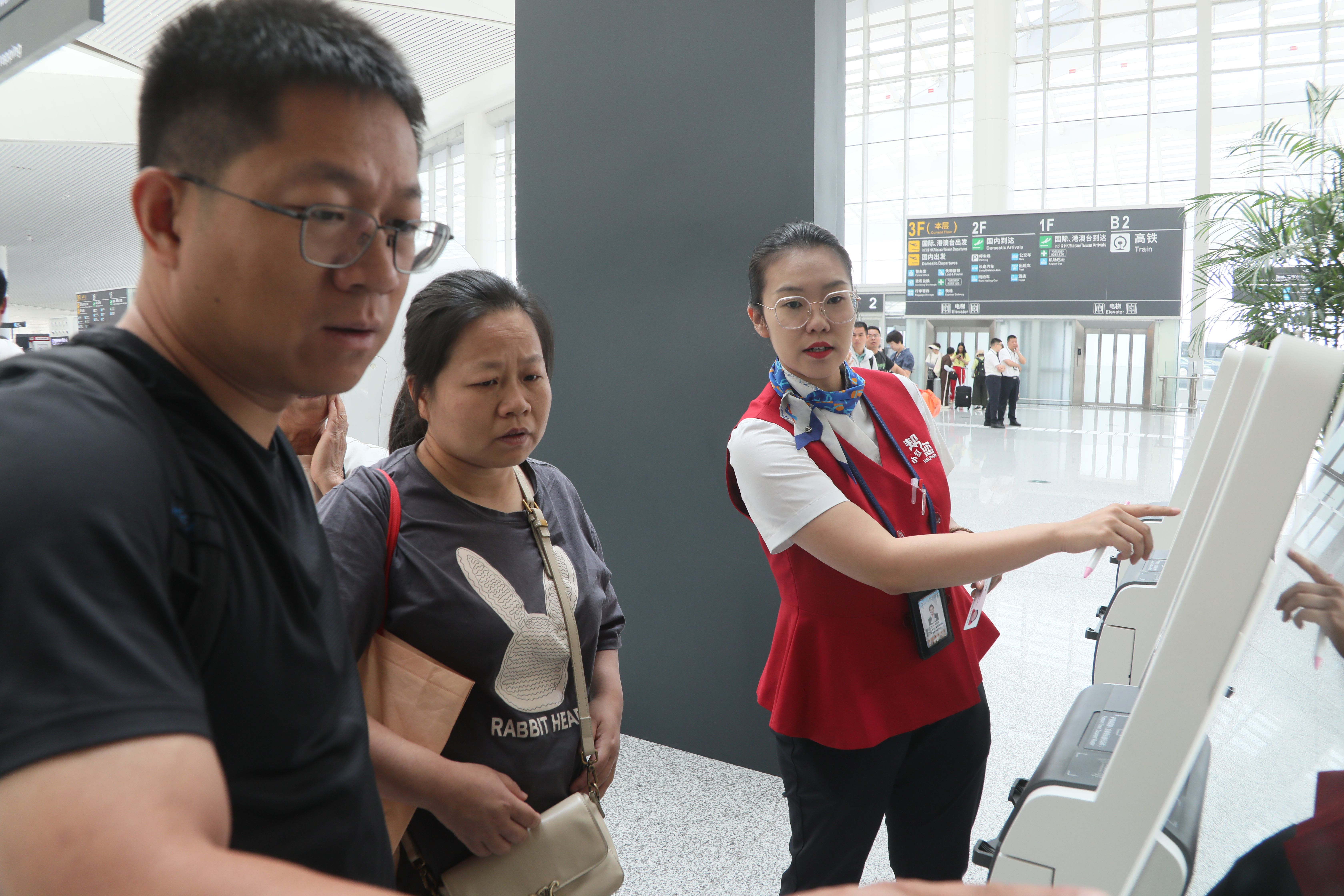 兰州中川国际机场“小红帮您”班组为旅客提供细致化服务。 张博 摄
