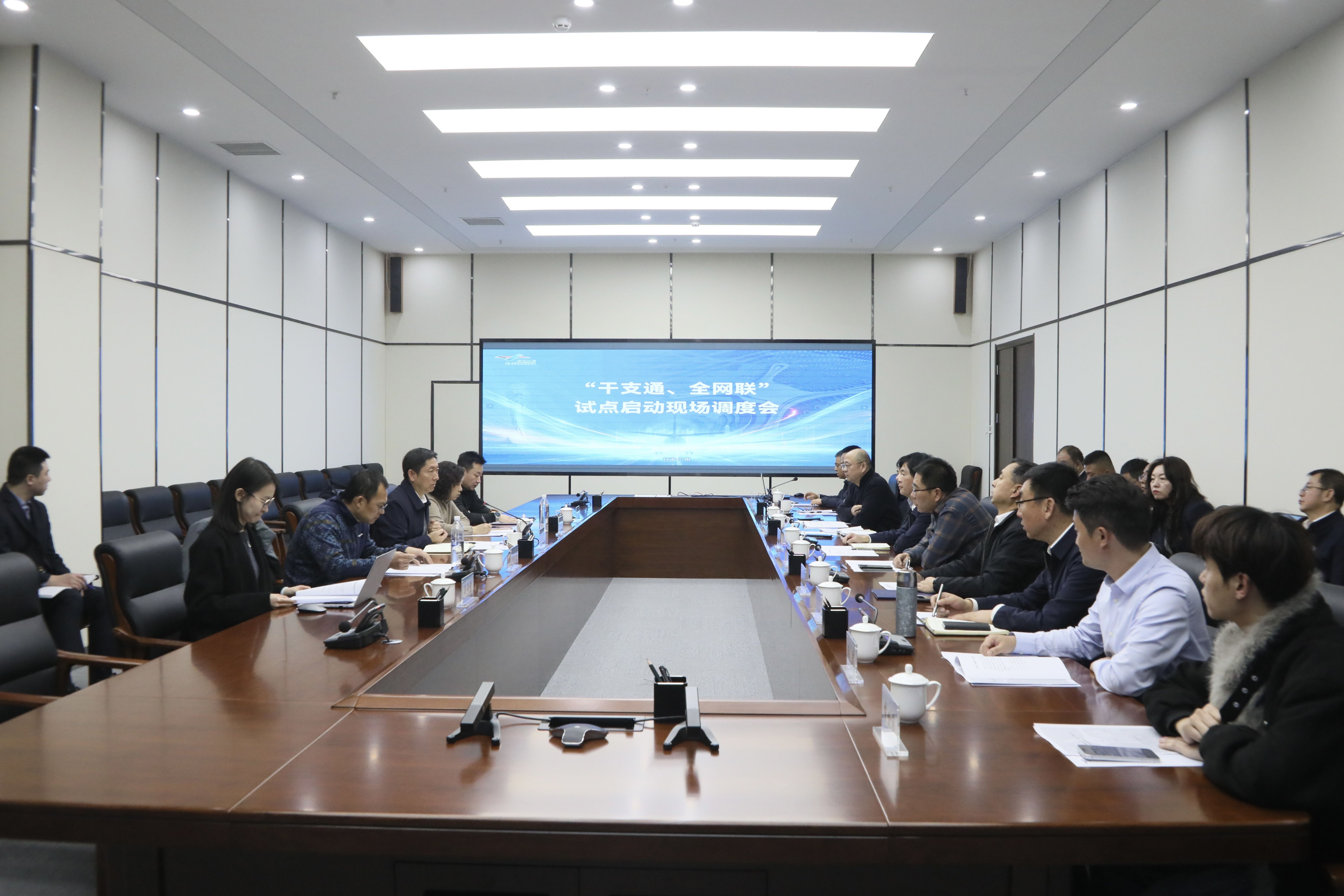 在试点启动现场调度会,兰州机场、东方航空、春秋航空介绍“干支通、全网联”航空运输网络服务试点相关情况。张斌 摄