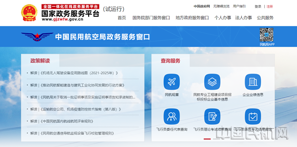 国家政务服务平台“中国民用航空局政务服务窗口”首页
