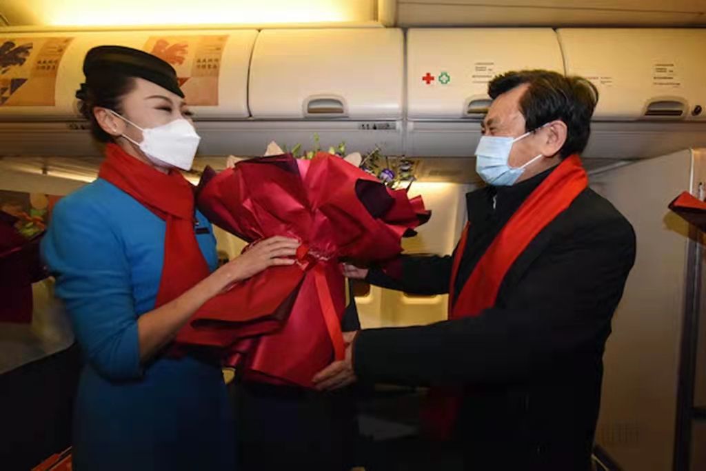 冯正霖说,今天的航班平安归来,意味着2021年民航业圆满收官。今年,我们国家大事要事喜事多,中国民航的发展也整体向好。面对疫情变化,中国民航守住了安全底线,稳住了发展的基本盘。在安全方面,中国民航运用系统观念、系统方法抓安全,深入践行“三个敬畏”“六个起来”,加强“三基建设”,将民航安全工作的“五个属性”融入工作实践,实现了我国运输航空持续安全飞行136个月、9900多万小时的安全飞行纪录,度过了又一个“安全年”。与此同时,中国民航全年基础设施投资力度持续加大,建设水平不断提高,以航班正常率为牵引的服务品质稳步提升,运输生产指标较去年也有一定增长,为国家经济社会发展贡献出了民航力量。