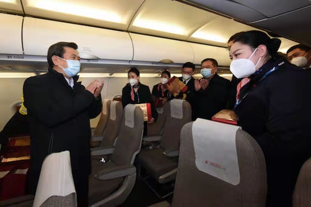 冯正霖迎接了国航、东航、南航、厦航、首都航的多个航班,并对航班机组人员进行慰问。“大家新年好!你们辛苦了!”当航班平稳到达大兴机场后,冯正霖面带笑容走进机舱,与机组人员一一握手,并为他们送上鲜花和礼物,感谢他们一年来对民航的辛勤付出,祝贺他们圆满完成2021年所有的飞行任务,祝福大家新年快乐。“感谢民航局党组的关心,新的一年,我们会再接再厉,越飞越好!”机舱内气氛热烈,大家表示对明年的民航发展充满希望。