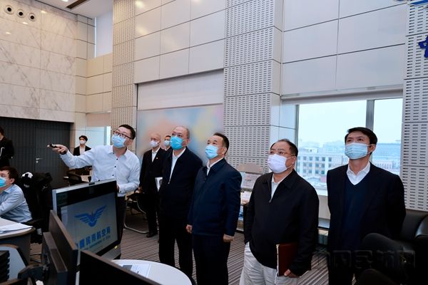吕尔学在运行监控中心大厅听取航班运行全流程监控工作汇报(本文图片均由胡宗吉拍摄)