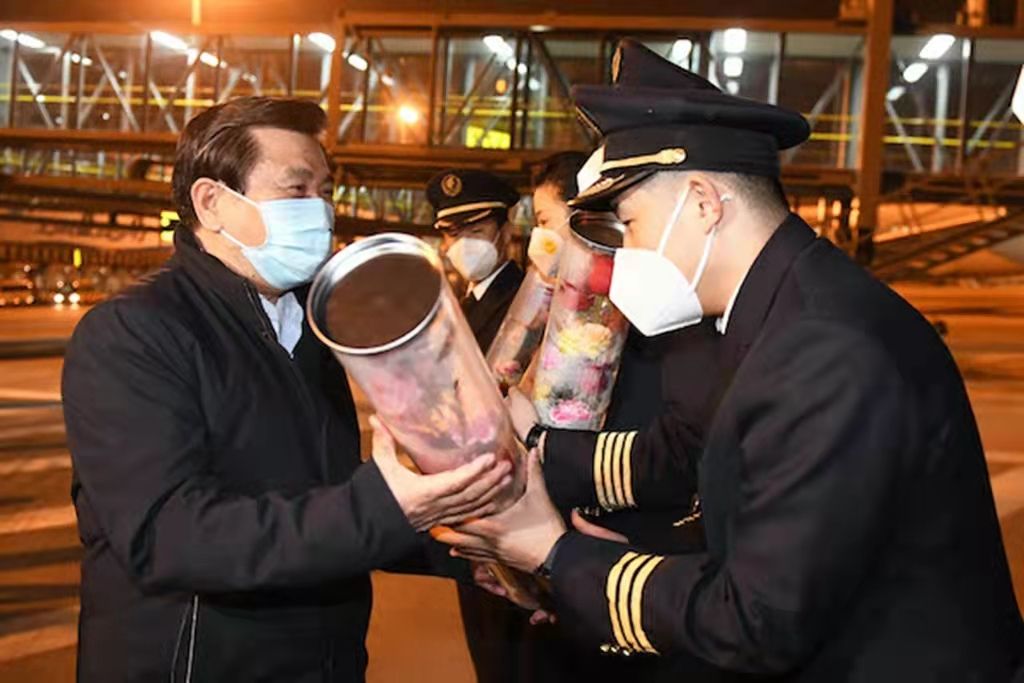 冯正霖在大兴机场迎接2021年最后一天航班平安归来