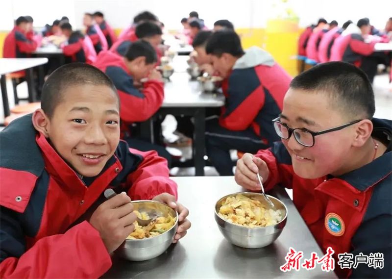 再来到定西市临洮县椒山初中,大课间时间学生们在操场上、阳光下尽情跑跳。“学校每天早上会给我们每个人发一袋纯牛奶、一个花卷或馒头、一个熟鸡蛋,再加一个苹果或桃子。吃得饱、吃得好,我们上课从不累。”临洮县椒山初中的学生们争相告诉记者。