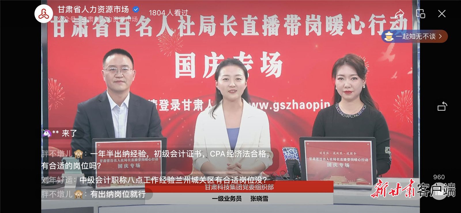 同时,省人社厅、兰州市人社局有关处室单位负责同志做客直播间,介绍了有关情况,省人力资源市场法律顾问讲解了求职法律知识,甘肃省“百千万”创业引领工程创业达人向网友分享了创业故事和成功经验。