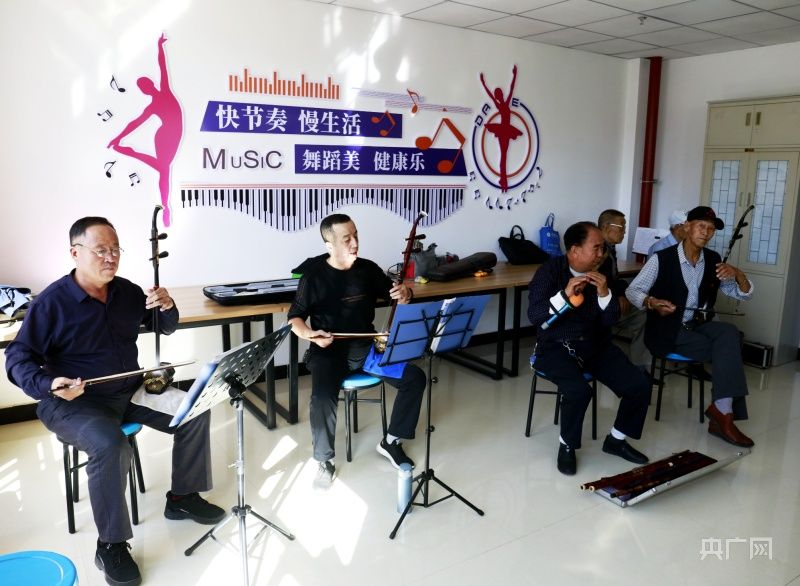 老人们在活动中心进行乐器表演(央广网发 白梅薇 摄)