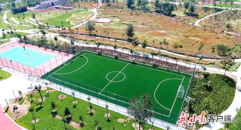 活力公园里足球场、网球场、篮球场等场所一应俱全。(图片除署名外,均由崆峒区融媒体中心提供)