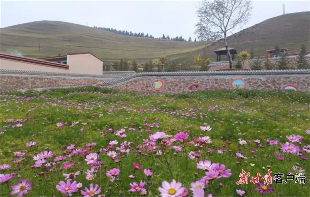 原本废弃了的残垣断壁,化身为草木葳蕤的小游园,柴扉半掩半开,遮掩不住八瓣梅热情地绽放;曾经臭气熏天的破旧畜棚处,悄然撑起几座古色古香的小凉亭,花朵绽放在秋日的暖阳下;依山傍水而建的“林缘山庄”坝堵村,正对着祁连山万亩森林屏障,相看两不厌。