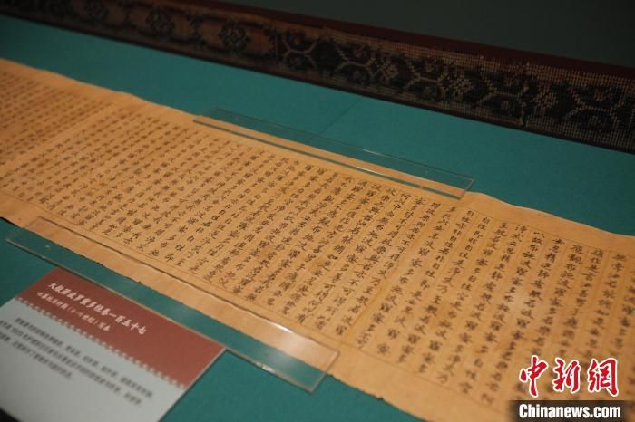 “敦煌遗书”专题由“世界的敦煌”及“敦煌的世界”两部分组成。展品共计49种50件,全部藏于国家图书馆,另外还有部分由敦煌研究院提供的数字壁画资源。