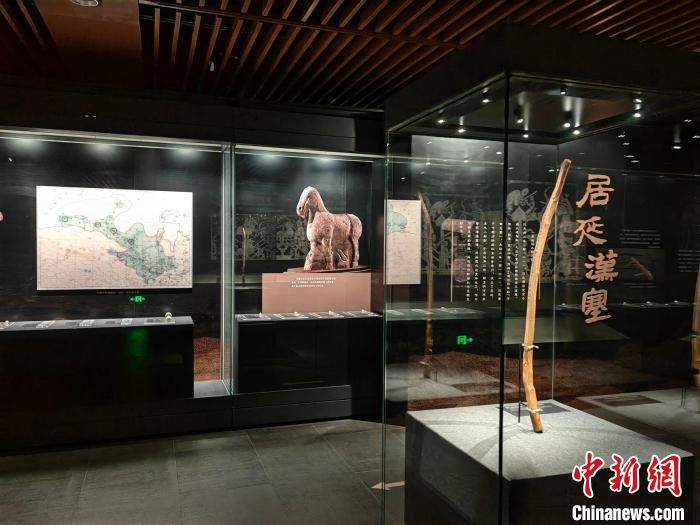 展厅中设计了还原居延地貌的微缩场景,装饰采用了汉代画像砖、画像石、壁画与简牍等元素,观众置身其中仿佛能够感受到恢弘壮阔、苍凉无际的边塞风光,还可以通过多媒体触控大屏,查询了解居延地区考古调查与简牍出土等信息。