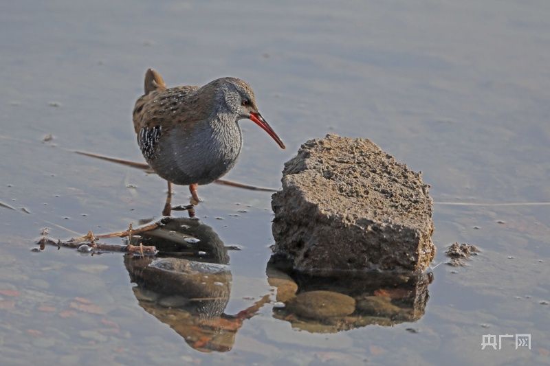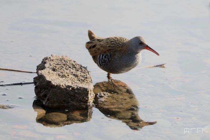 西方秧鸡在浅水区觅食(央广网发 付宗斌 摄)