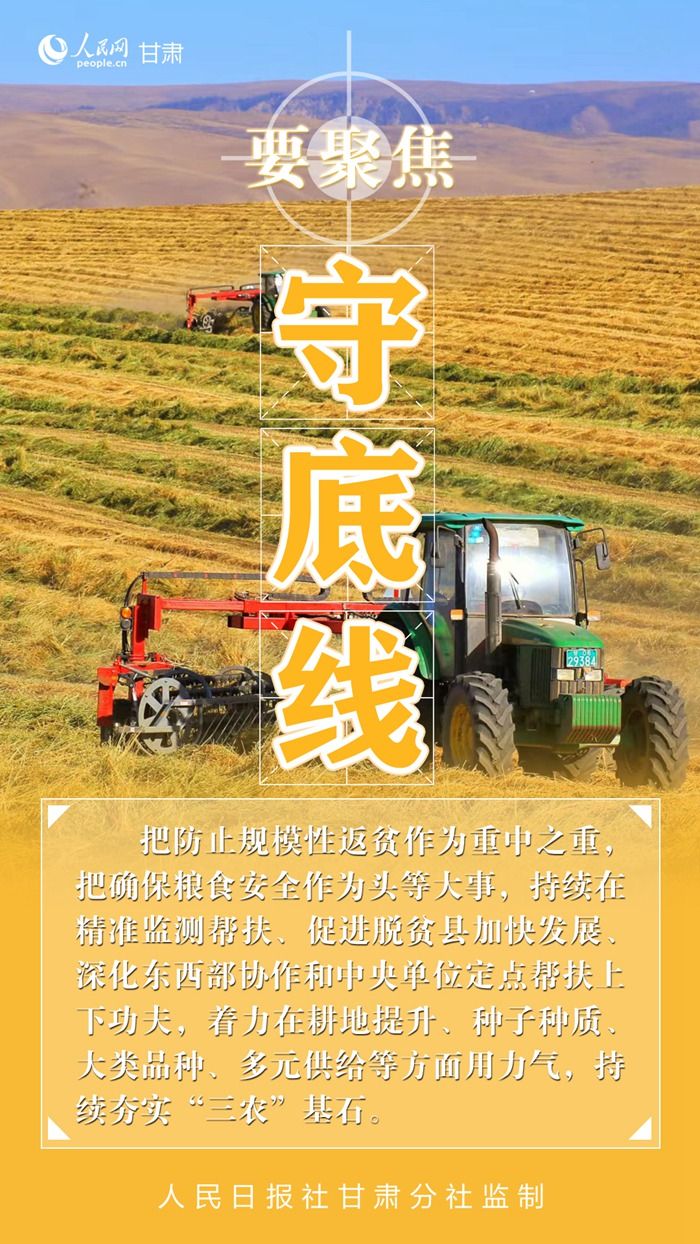 编者按:2022年1月10日,甘肃省委农村工作会议在兰州召开。会议围绕加快建设农业强省、推进农业农村现代化,安排部署了当前和今后一个时期的重点任务。甘肃持续夯实“三农”基石,聚焦“守底线”“土特产”“能致富”“现代化”“增活力”“强保证”,向着建设农业强省的奋斗目标大步迈进!
