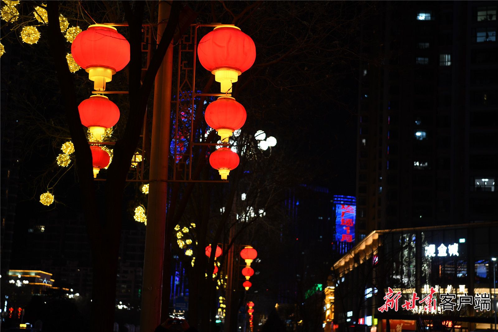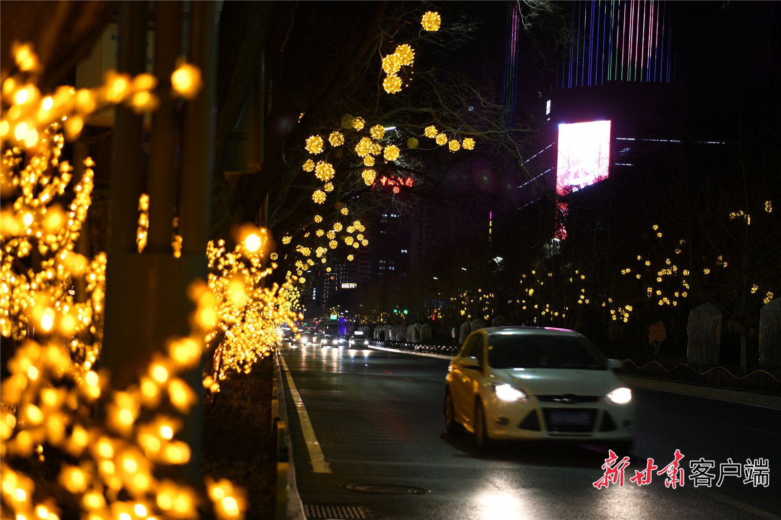 中环广场、东方红广场、市民公园及中山路、天水路等主街干道被寓意吉祥、璀璨夺目的花灯笼罩。沿天水路向北,道路两侧披上多彩“新装”,红灯笼、中国结、树挂小彩灯等各色灯光交相辉映。在酒泉路、天水路等4条主要路段和城区5座大桥悬挂了重复利用的三联式LED发光大红灯笼,3个大中小发光的大红灯笼诠释着“三星高照”的美好寓意,不少市民驻足观赏,也有不少家长带着孩子拍照打卡,春节喜庆氛围十分浓厚。
