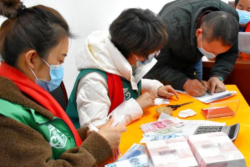 数九寒天,寒风凛冽。分红大会现场却是人头攒动、欢声笑语,处处洋溢着“暖意”。一摞摞分红款被整齐地码放在桌子上,签字、按手印、领取分红和奖金,股东和社员们手里攥着刚刚领到的分红款,心里也乐开了花。