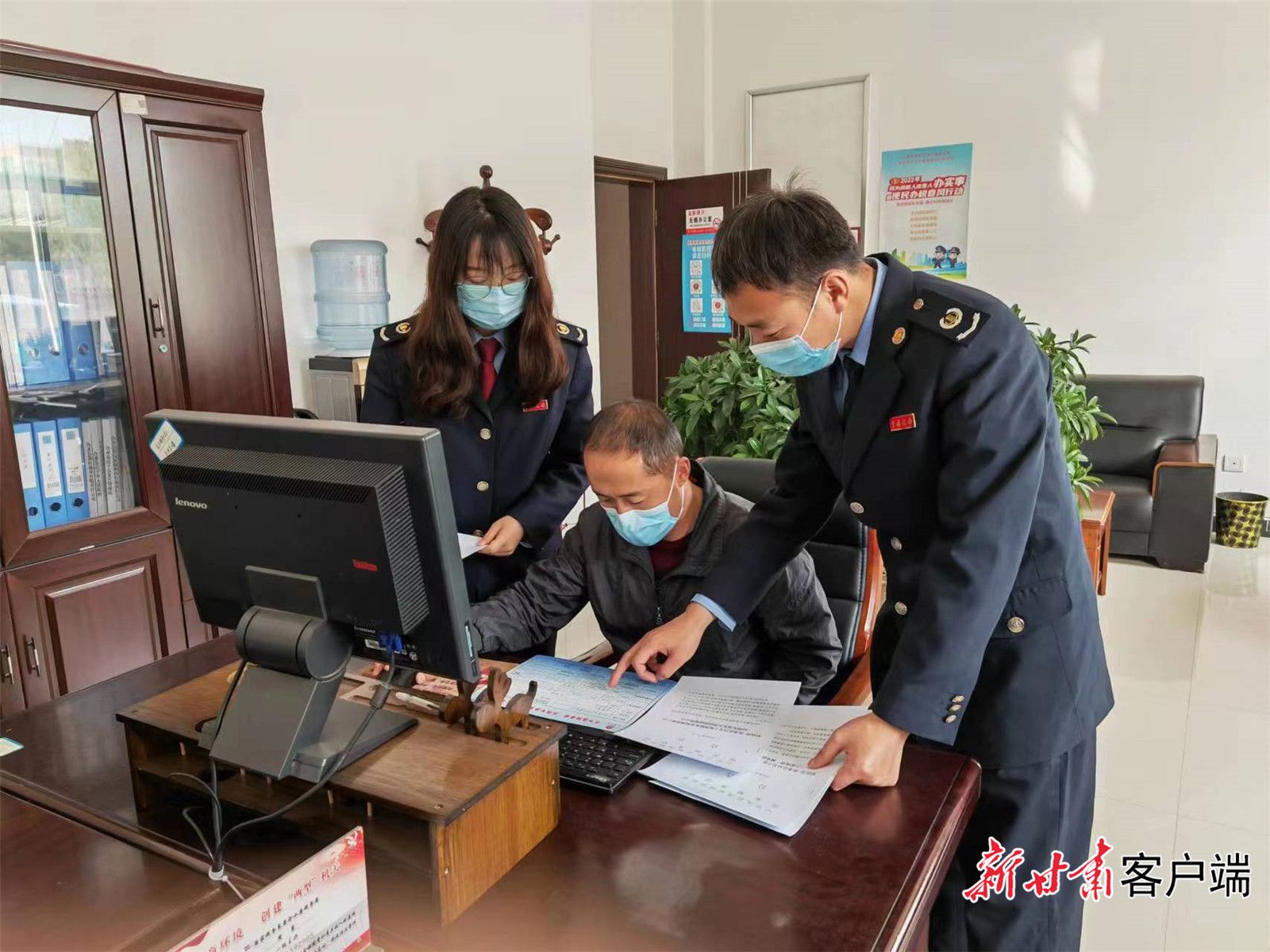 庆阳市合水县税务干部为纳税人送去“幸福两单”。(甘肃省税务局供图)