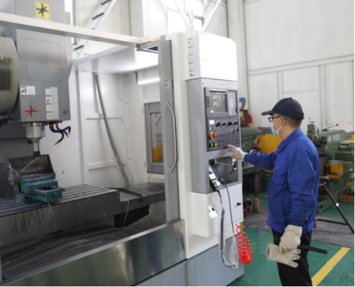 工人正在对新引进的数控机床进行调试 陈海龙 摄