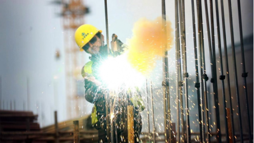 工人不畏严寒抢工期 乔伟 摄