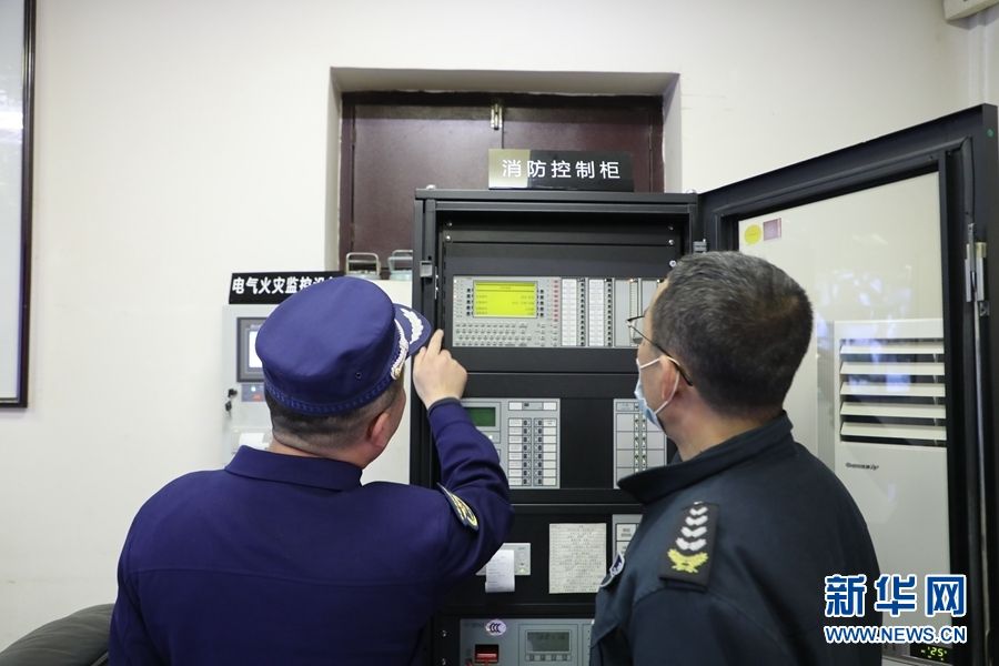 在伏羲庙景区景区消防控制室,杨天祥查看消防控制柜运行情况。(1月18日摄)