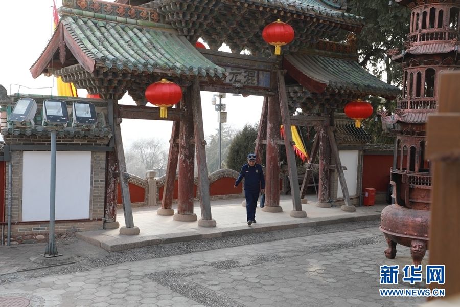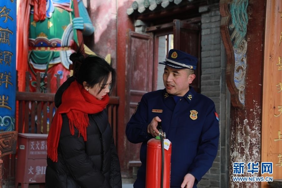 杨天祥在伏羲庙景区同景区保安检查消防设施运行情况。(1月18日摄)